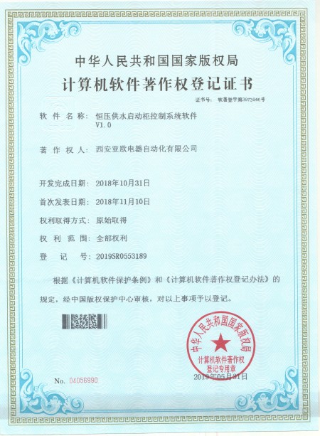 - 關于我們 - 資質榮譽 - 恒壓供水啟動柜控制系統軟件