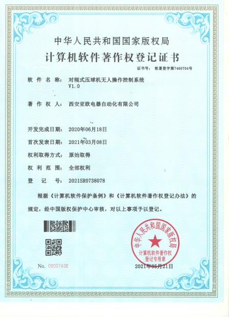 - 關(guān)于我們 - 資質(zhì)榮譽 - 對輥石壓球機無人操作控制系統(tǒng)